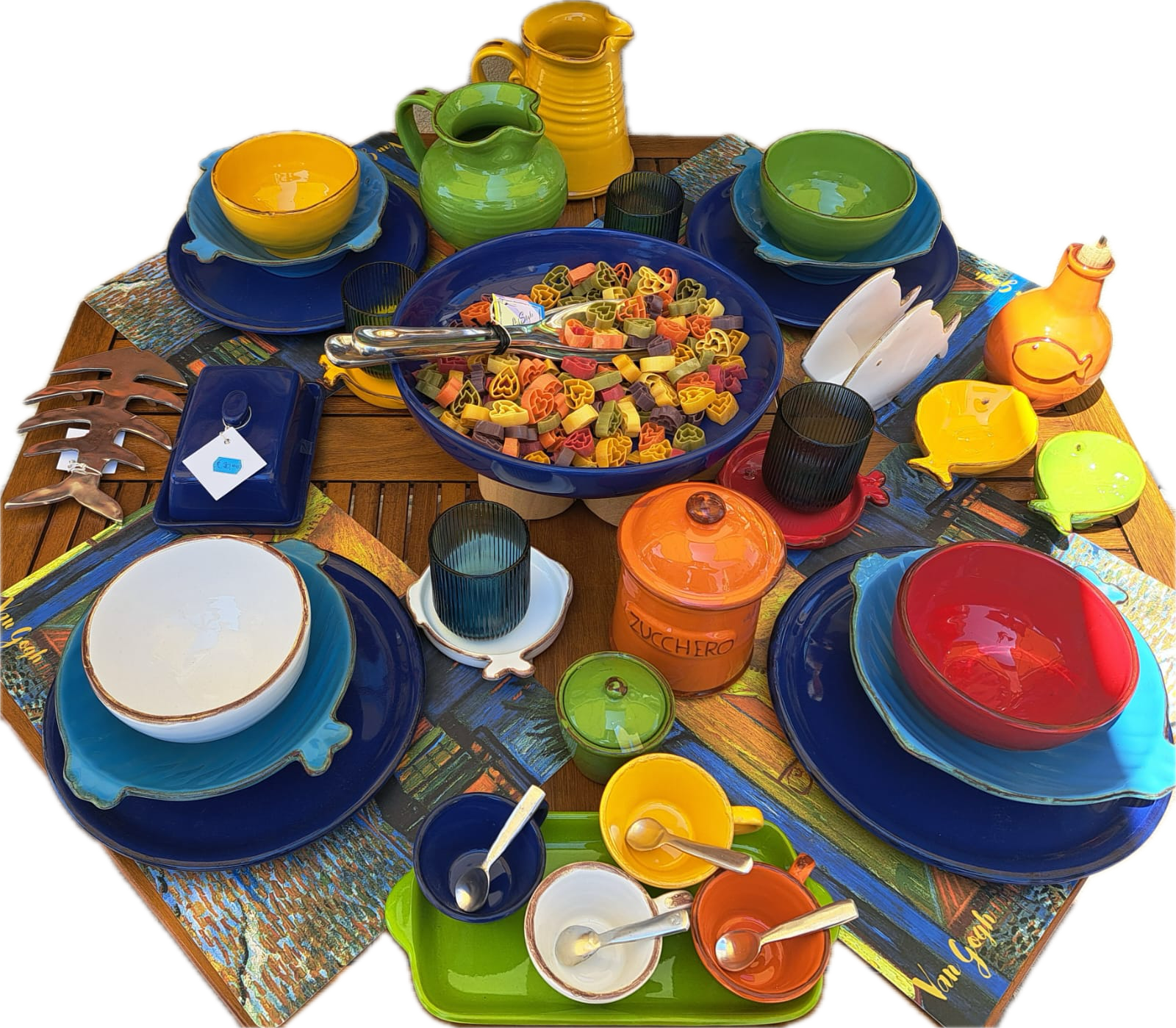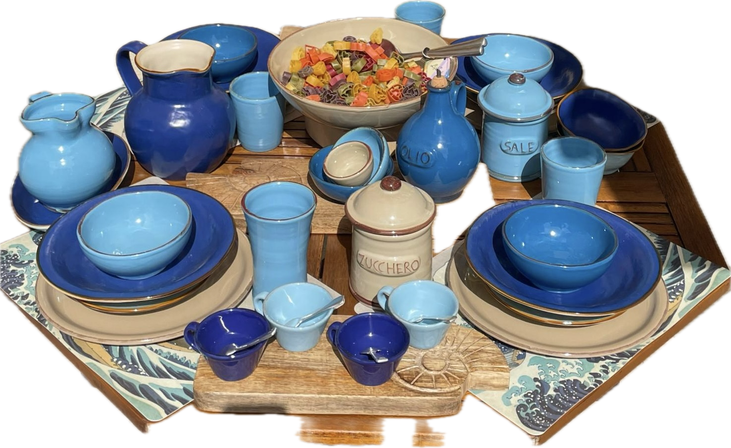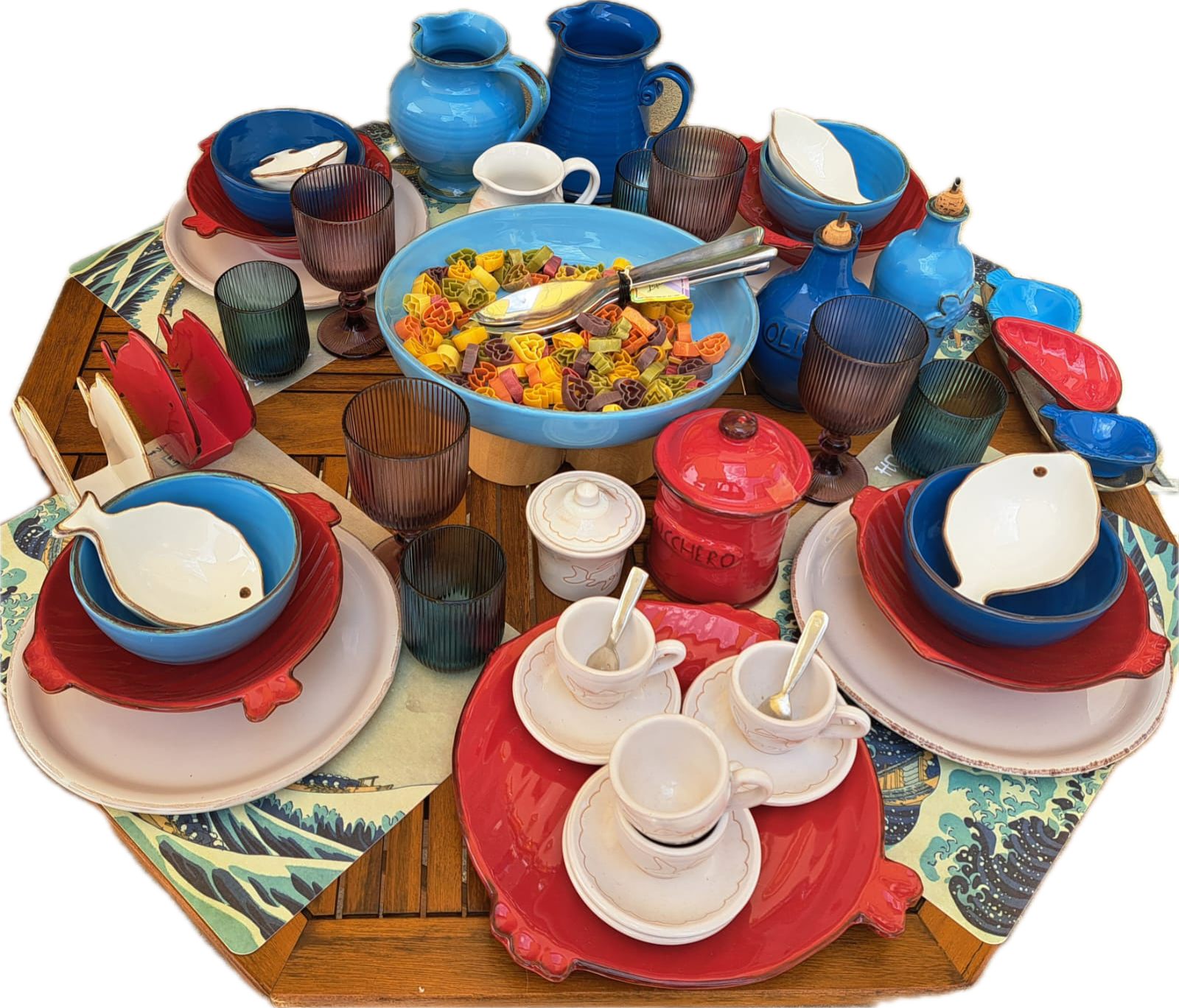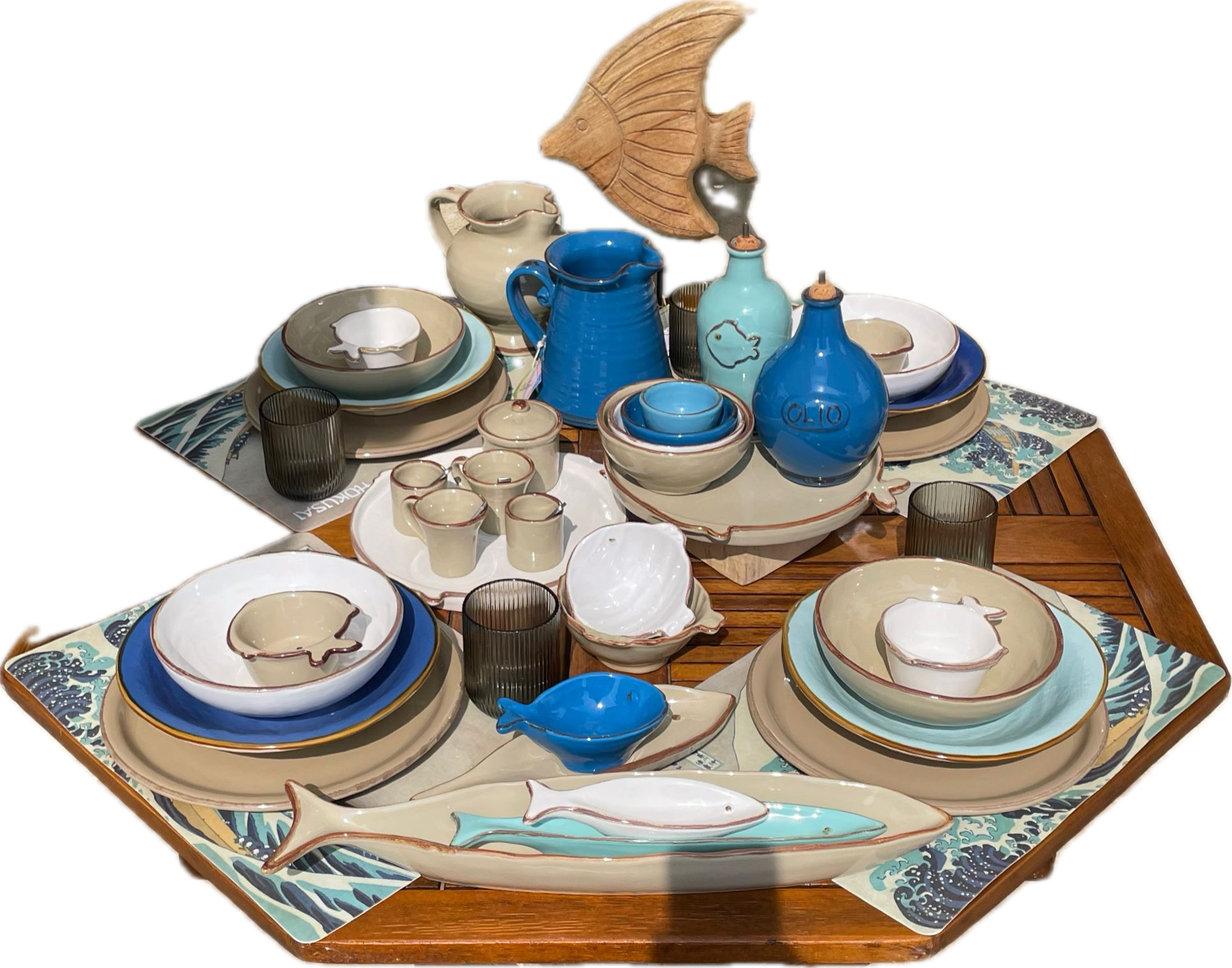 Puoi creare il tuo servizio completo scegliendo forme e tonalità, oppure cominciare con un singolo piatto, una ciotola o una tazza. Non c’è fretta: puoi aggiungere un pezzo alla volta, ogni volta che torni a Castiglione della Pescaia… e così la tua collezione diventa anche il ricordo di viaggi ed emozioni.