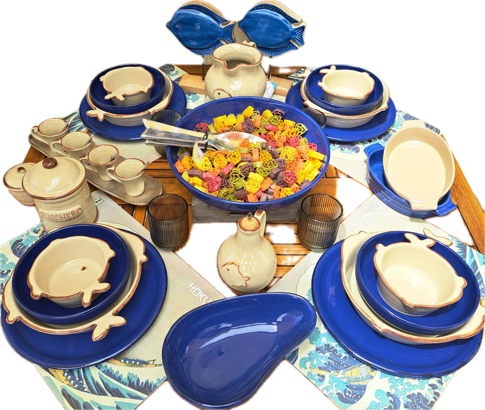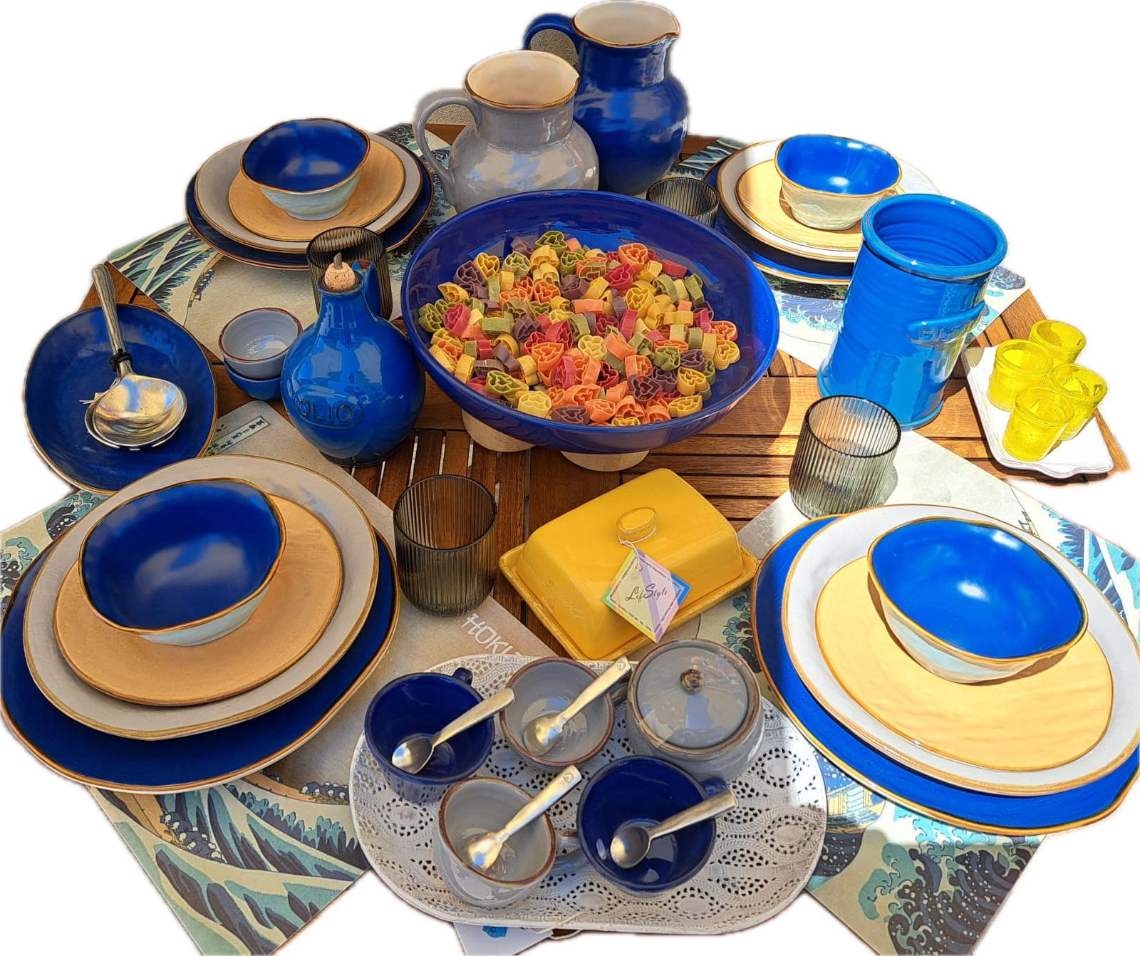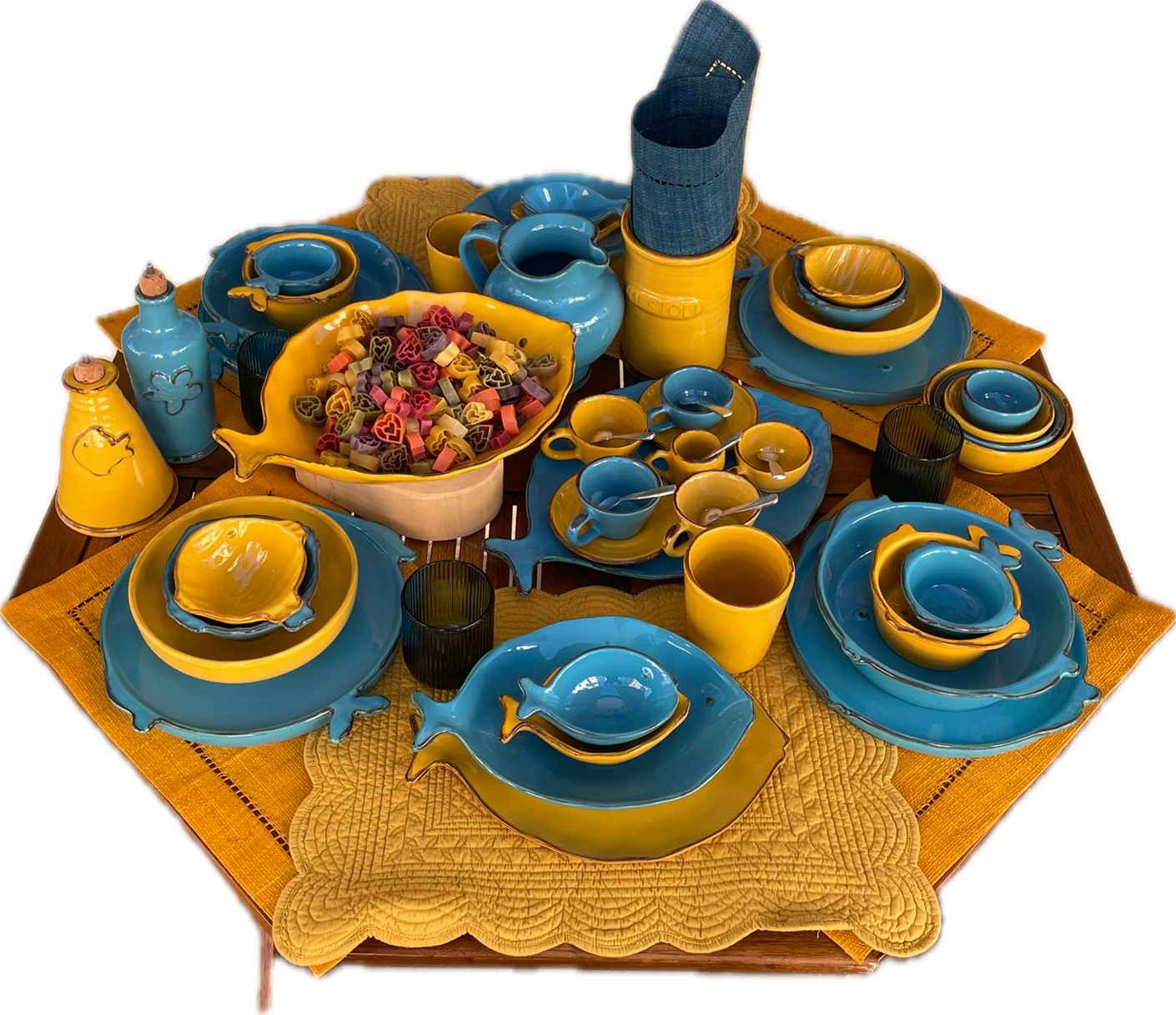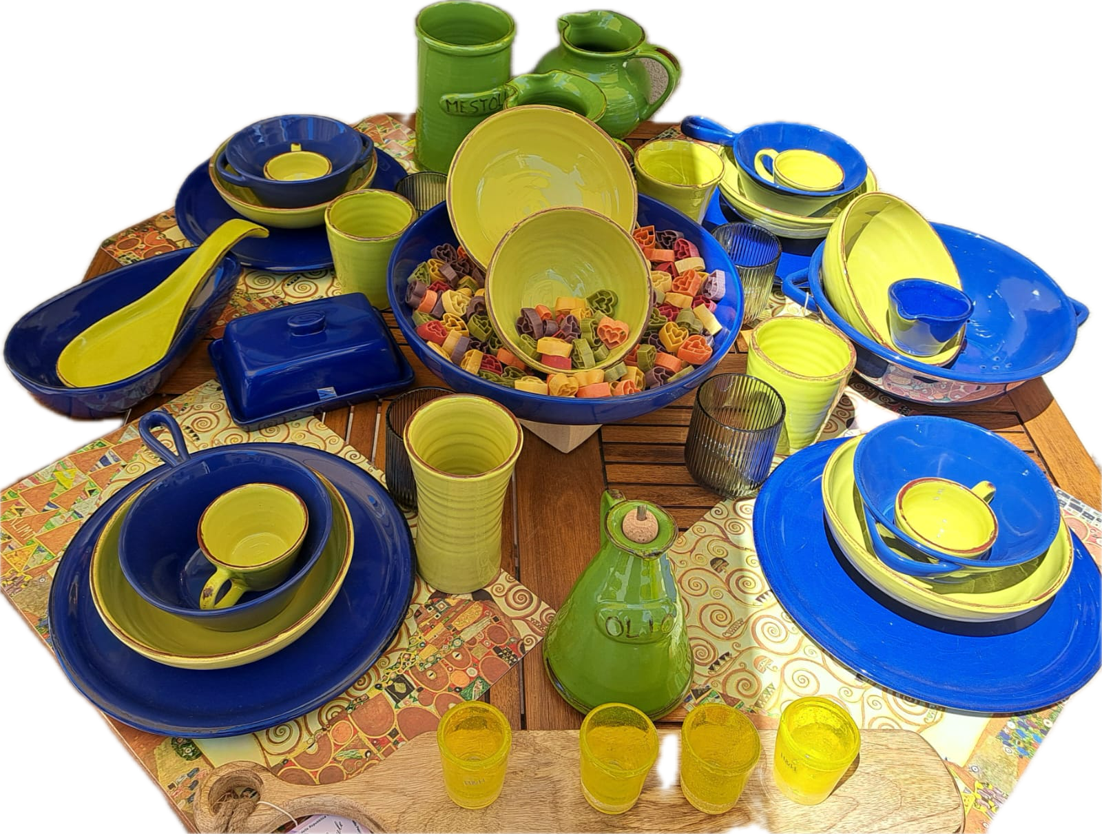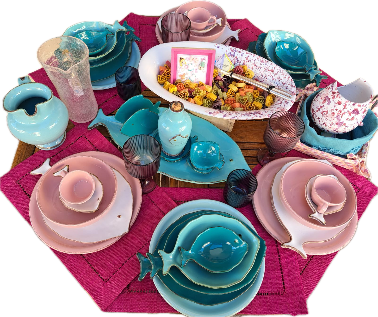 Puoi creare il tuo servizio completo scegliendo forme e tonalità, oppure cominciare con un singolo piatto, una ciotola o una tazza. Non c’è fretta: puoi aggiungere un pezzo alla volta, ogni volta che torni a Castiglione della Pescaia… e così la tua collezione diventa anche il ricordo di viaggi ed emozioni.