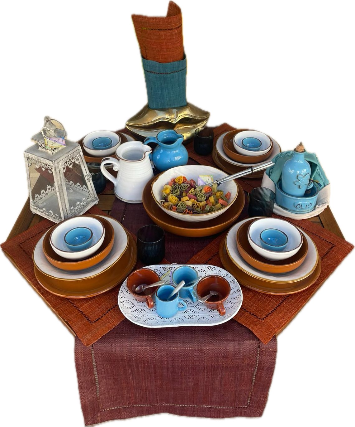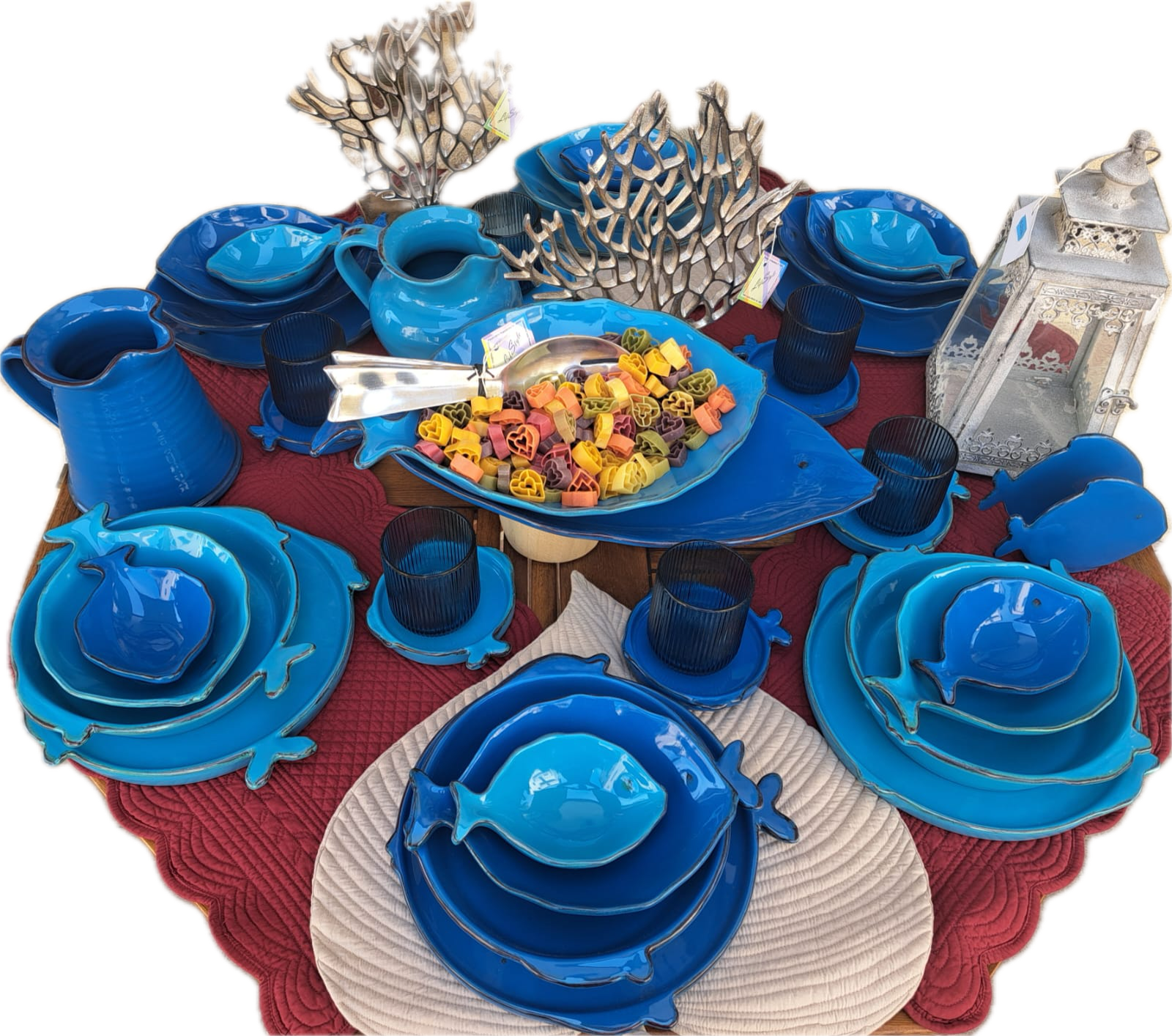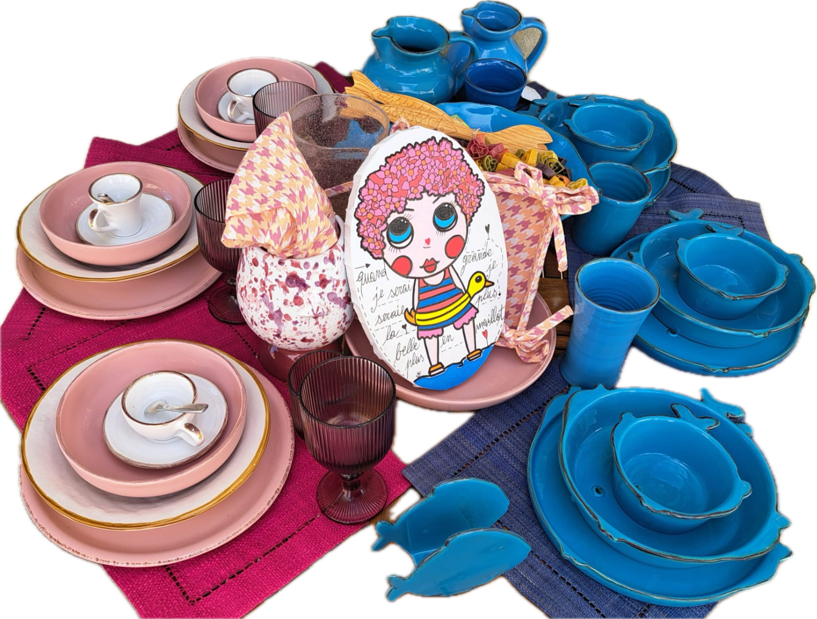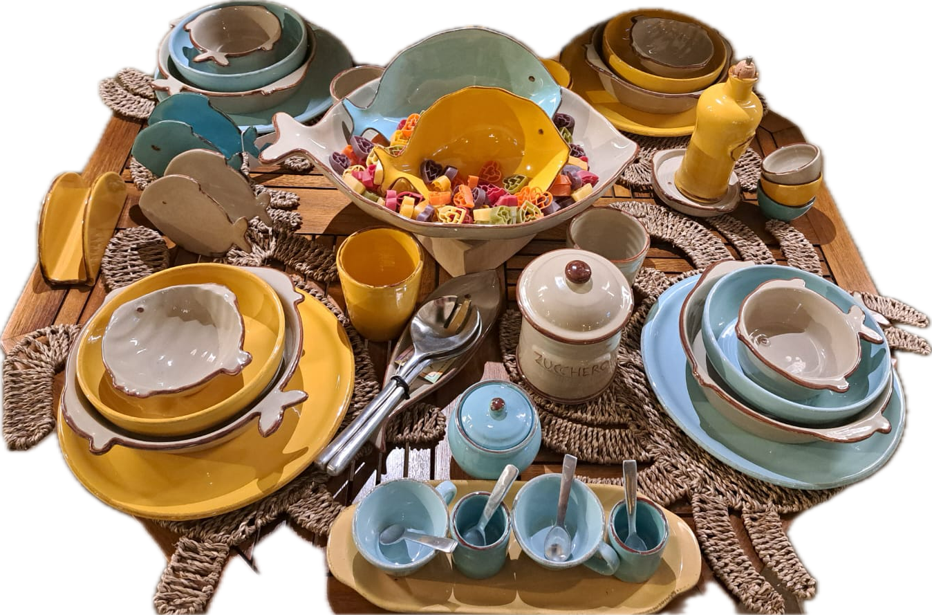 Puoi creare il tuo servizio completo scegliendo forme e tonalità, oppure cominciare con un singolo piatto, una ciotola o una tazza. Non c’è fretta: puoi aggiungere un pezzo alla volta, ogni volta che torni a Castiglione della Pescaia… e così la tua collezione diventa anche il ricordo di viaggi ed emozioni.