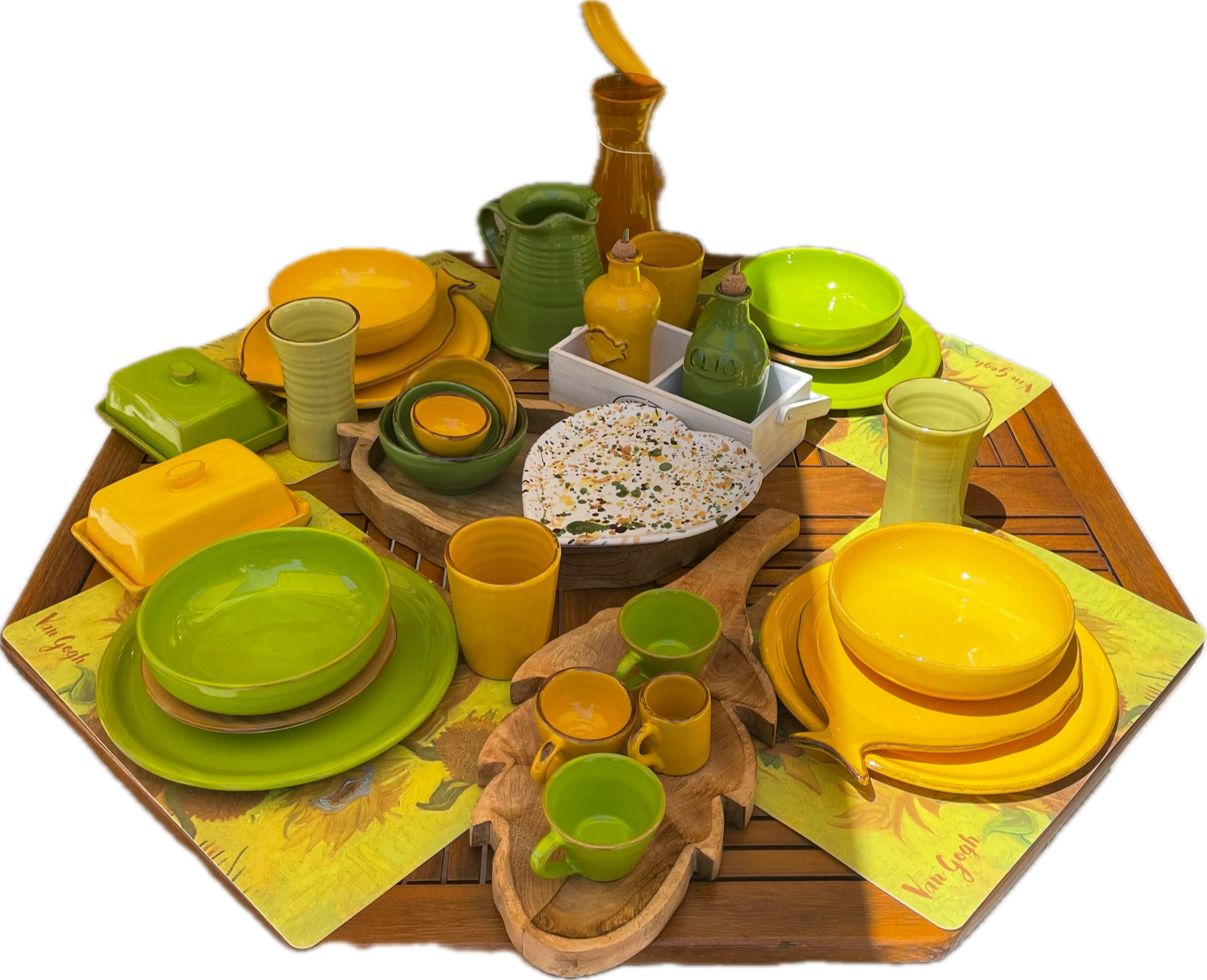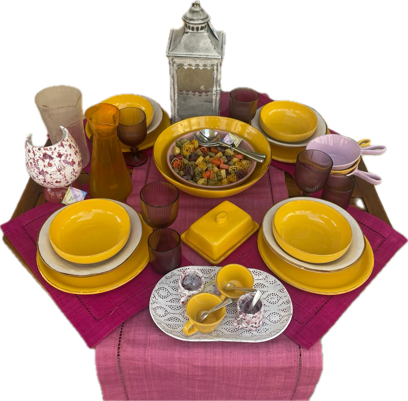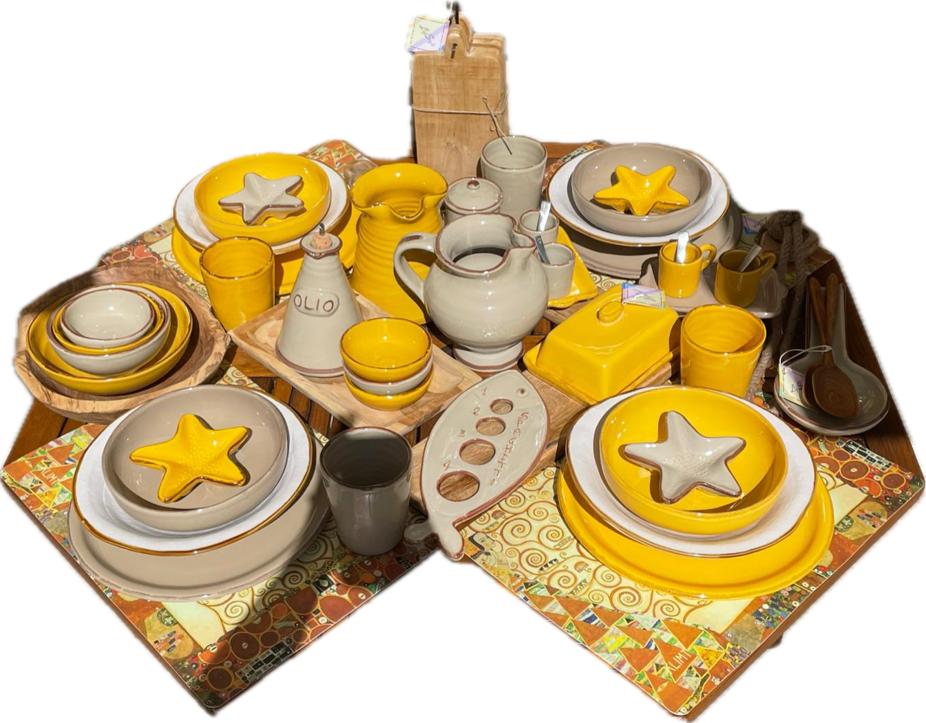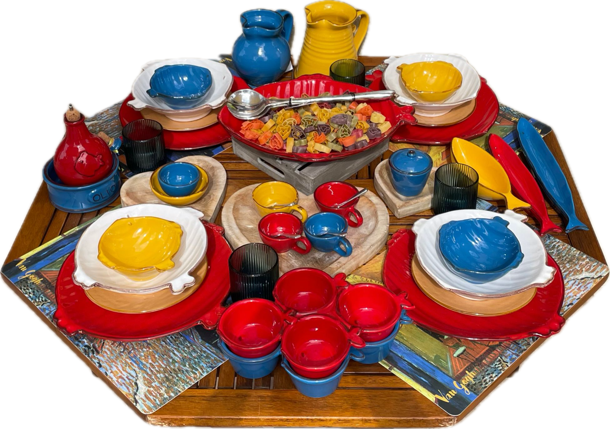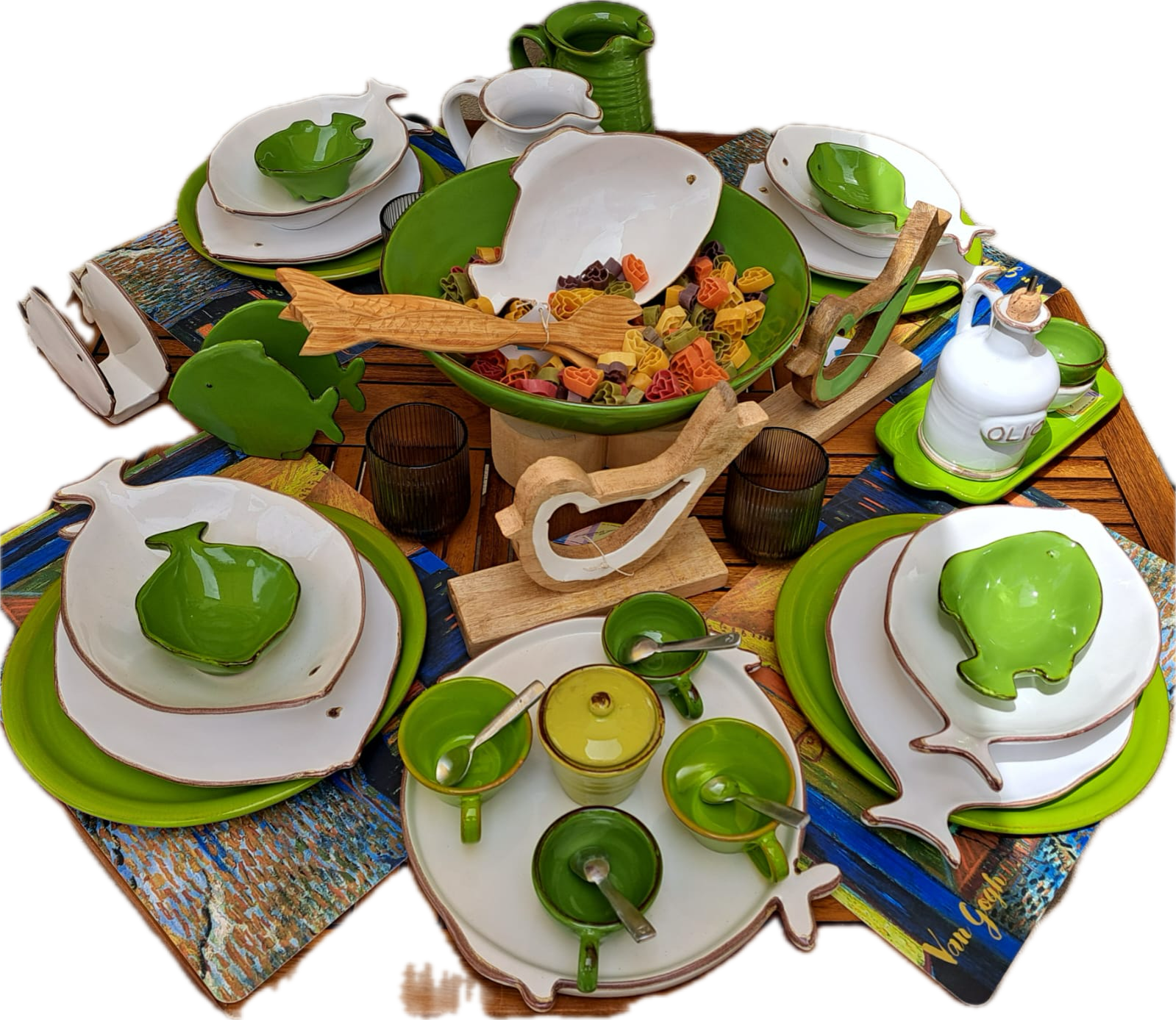 Puoi creare il tuo servizio completo scegliendo forme e tonalità, oppure cominciare con un singolo piatto, una ciotola o una tazza. Non c’è fretta: puoi aggiungere un pezzo alla volta, ogni volta che torni a Castiglione della Pescaia… e così la tua collezione diventa anche il ricordo di viaggi ed emozioni.